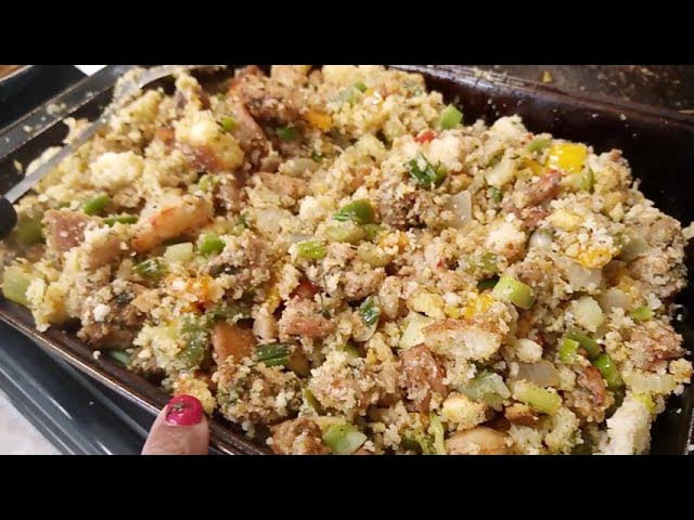 Ep 416 Seafood Cornbread Dressing How To Make Seafood Cornbread Stuffing Youtube